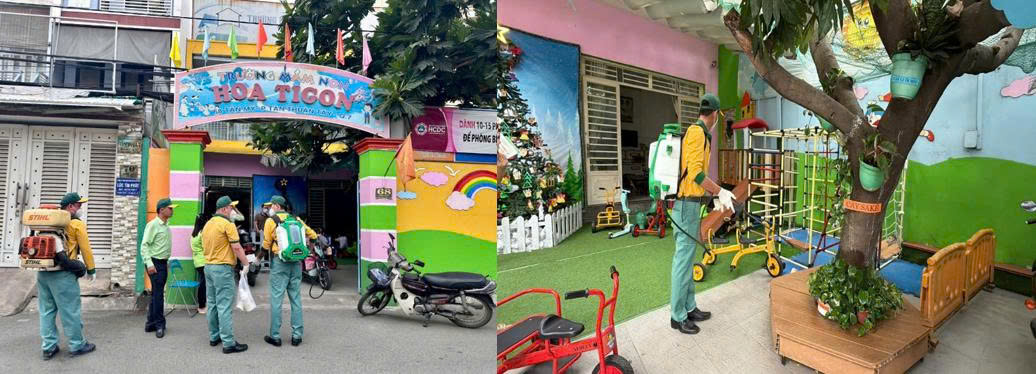 Bên cạnh đó, VFC-PestMan còn đặc biệt lưu ý đến việc phun xử lý muỗi tại các cơ sở nhà trẻ trên địa bàn, nhằm bảo vệ môi trường vui chơi an toàn cho trẻ em – đối tượng dễ bị ảnh hưởng bởi dịch bệnh sốt xuất huyết.